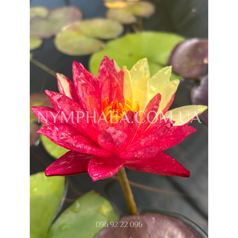 Без сомнений, это одна из лучших и самых уникальных нимфей. Цветок нимфеи Wanvisa чаще всего красно-оранжевый с розовым оттенком, бывает с желтыми пятнами и даже целыми лепестками, диаметр примерно 12-15 см. Иногда бывает половина цветка желтая, а другая половина – лососево-оранжевая (особенно в прохладную погоду).
