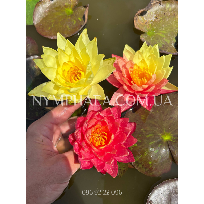 Доктор Chansilpa выращивал растение в течение 3-х лет и заметил, что эта мутация стабильна, после чего эта нимфея начала завоёвывать сердца владельцев прудов по всему миру. И хотя этот сорт уже довольно распространен, он совершенно не теряет своей популярности. Одна из основных причин – часто дает уникальные цветы с различными комбинациями цветов желтого и лососевого.Цветет очень обильно, цветы поднимаются над водой примерно на 10-15 см.