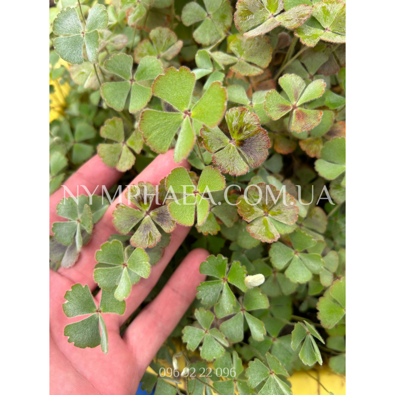 Листья очень необычные и уникальные как для водных растений, нежно-зелёные с коричневым оттенком, а на солнечных местах (особенно в межсезонье) могут стать практически полностью коричневыми. Ещё одна особенность – листочки покрыты белым пухом. Растение выглядит очень декоративно, мелкие (около 1-3см в диаметре) ажурные листки на тонких черешках, красиво отражаются на воде и создают очень естественный, «дикий» вид. Весной растение быстро отрастает, образуя плотный покров, который сохраняет декоративность весь сезон аж до морозов. Осенью надземная часть постепенно отмирает, а корневище спокойно зимует под водой или во влажной почве (желательно опустить на глубину ниже промерзания льда).