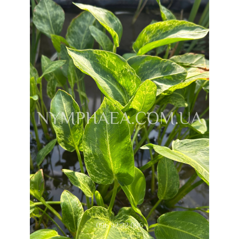 Sagittaria "Crushed Ice" – супер редкий и невероятно красивый сорт стрелолиста, который в первую очередь выделяется уникальной мраморной окраской листьев. Ярко-зелёная листовая пластина с кремово-белыми пятнами и лёгким серебристым оттенком делает растение настоящей находкой как для коллекционеров, так и для любителей иметь в своём пруду экзотику.